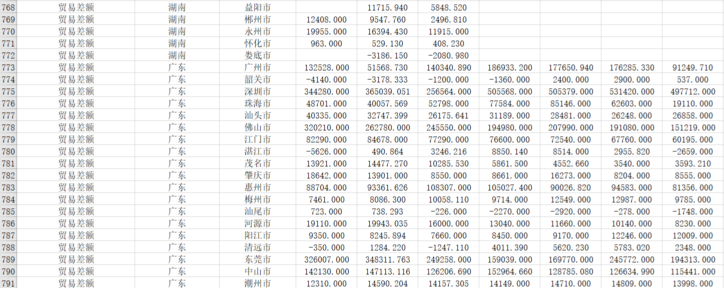 数据名称:各地级市-进出口与贸易差额