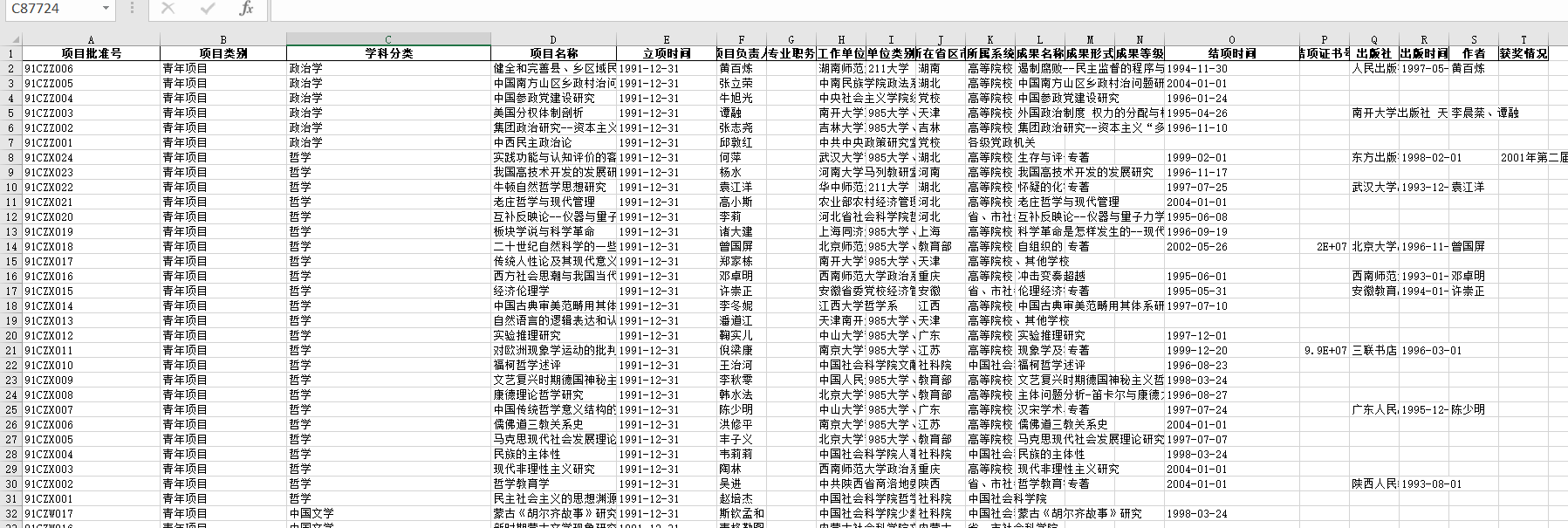 科基金项目数据