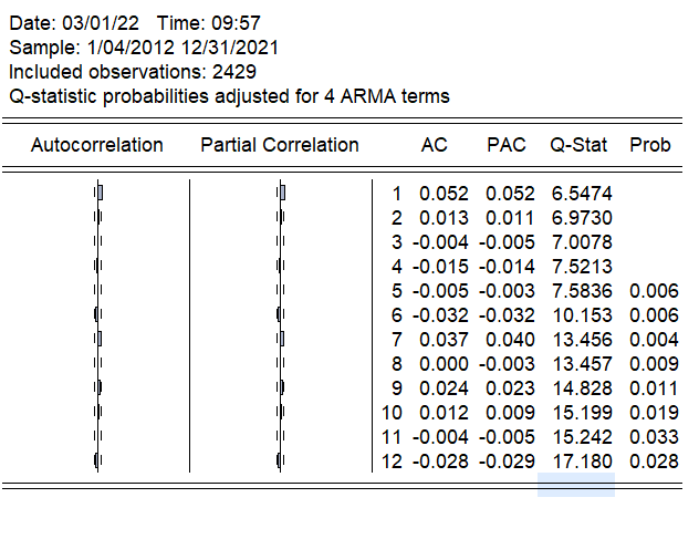 建立ARMA模型,对结果进行自相关检验。图中第1至4阶P值不显示,这是为什么呢?