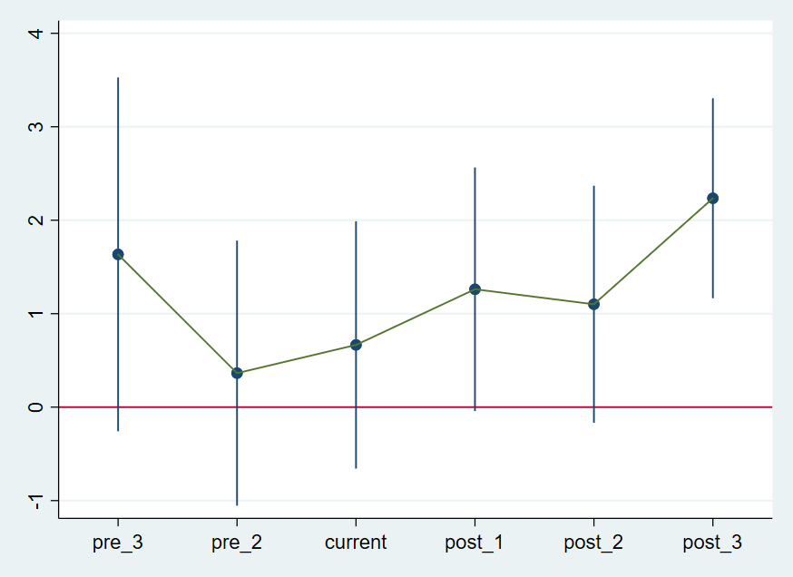 想请问下这样的结果平行趋势检验算通过了吗