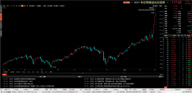 近期,随着欧美制裁升级,俄乌局势不确定性增加,原油价格飞涨。3月3日,布伦特原油期货突破115美元/桶,为2008年以来首次。WTI原油期货价格站上110美元。