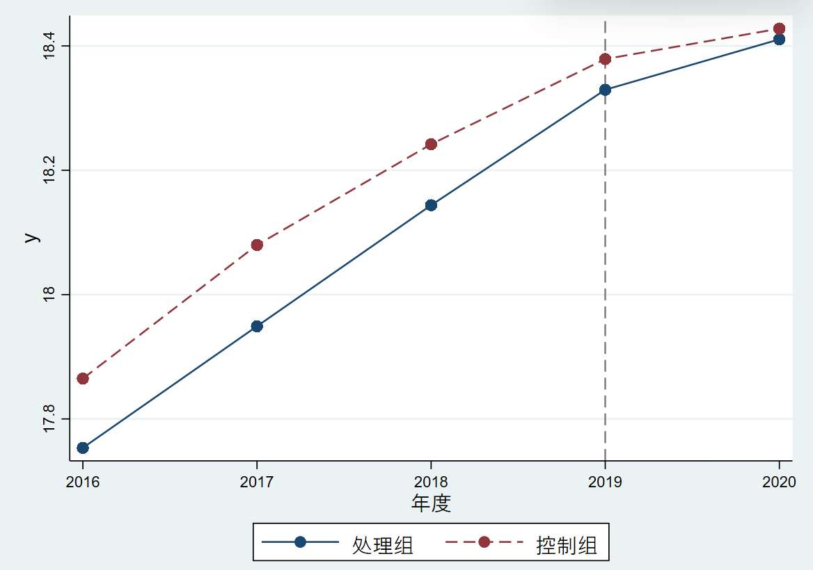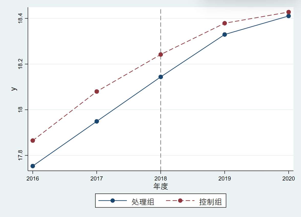 卑微菜鸡论文狗 发表于 2022-3-6 21:03 请问这个趋势图可以说明政策前后有效嘛,无论是政策时间点在2018,还是2019,我只会做画图的了嗐