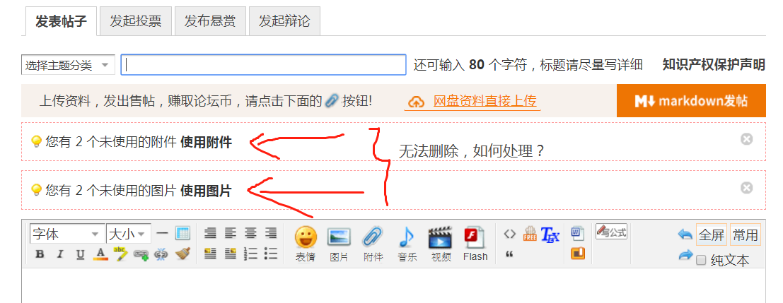无法删除附件导致无法发帖,请问有知道如何解决的吗?