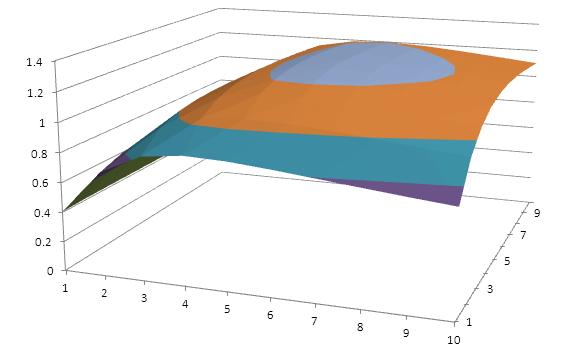 将a代入到z的方程中即可得到z(1+剩余价值率)的关于铁匠额外消耗粮食x数量和农民额外消耗铁器y数量的函数(见下图)。