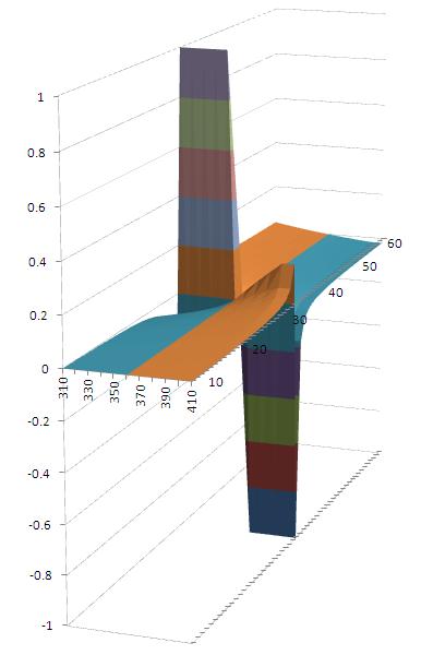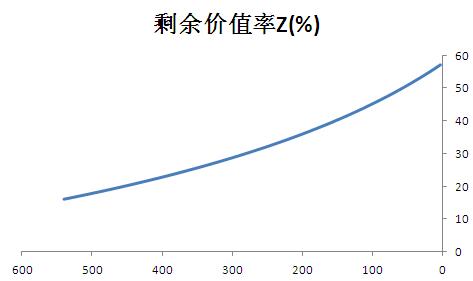 在该图中,当y = 时,边际剩余价值率之比趋向于无穷,y < 时为负无穷,y > 时为正无穷;当x=360时,边际剩余价值率之比为0,但除了y=36这个点是无穷外。