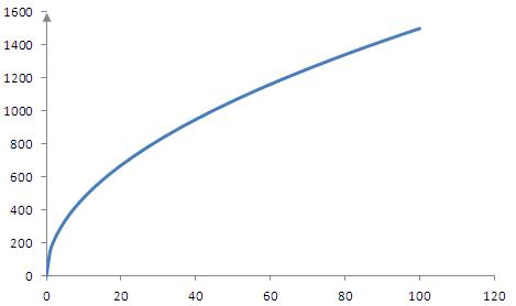 一旦农民的生产函数是F(X)=150*sqrt(X),铁匠的生产函数是G(Y)=sqrt(22.5*Y),那么社会生产会自动调整到农民消耗36公斤铁器生产900公斤粮食、铁匠消耗360公斤粮食生产90公斤铁器的均衡生产状态,在这个状态下,剩余价值率为25%,铁器价值为10。上图中除该均衡点外的其他任何点的生产状态都不是均衡状态,都会自动的向均衡点移动,除非生产函数发生改变(即生产力条件发生变化)。