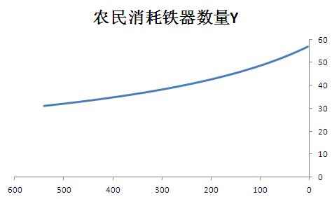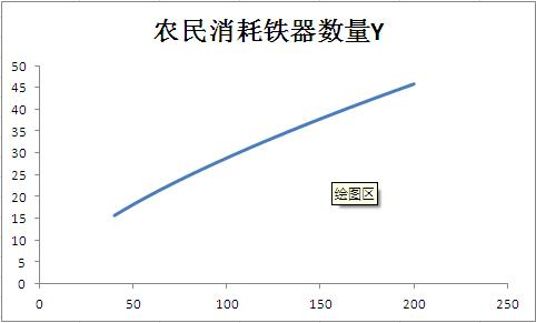 假设农民每年自身消耗粮食360公斤,另消耗铁器y公斤,生产粮食150*Sqrt(y)公斤,铁匠每年自身消耗粮食360公斤,另消耗粮食x公斤,生产铁器Sqrt(22.5*x)公斤。