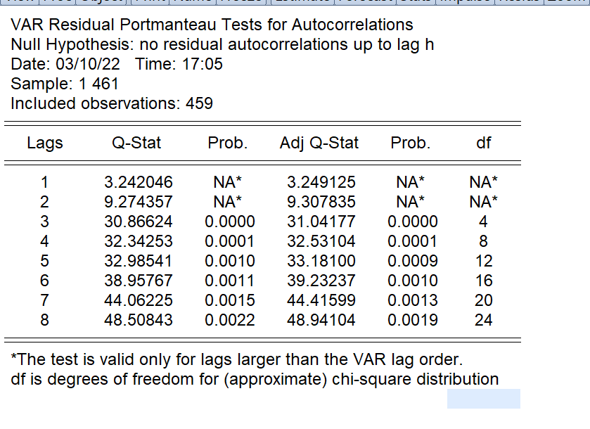 求解答:var模型做出来残差自相关可以做脉冲响应和JJ检验吗?