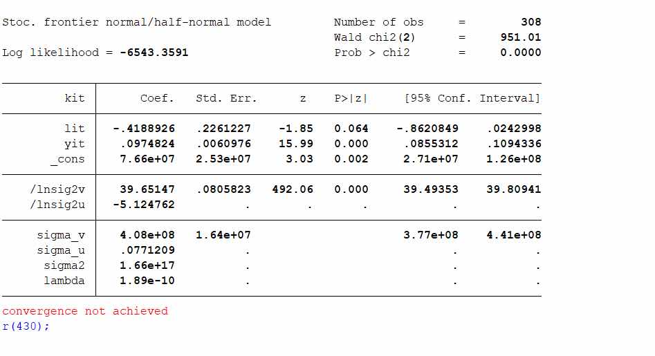 求大神指导:如何在STATA里实现SFA跑效率