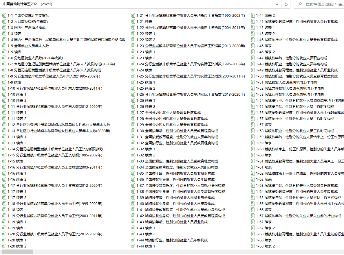 中国劳动统计年鉴2010--2021(excel格式)