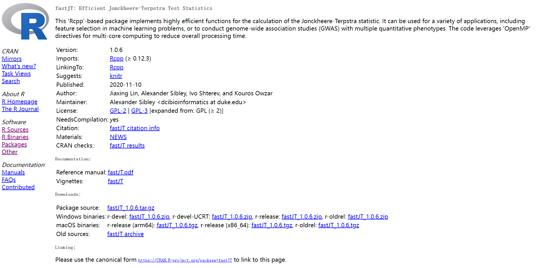 This 'Rcpp'-based package implements highly efficient functions for the calculation of the Jonckheere-Terpstra statistic. It can be used for a variety of applications, including feature selection in machine learning problems, or to conduct genome-wide association studies (GWAS) with multiple quantitative phenotypes. The code leverages 'OpenMP' directives for multi-core computing to reduce overall processing time.
