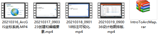 整理的ArcMap基础教程。共有4个视频,共3g。包括4种技术,分别为坐标系统、创建和编辑要素、标注可视化、设计地图排版等方面,附带了可操作的数据。