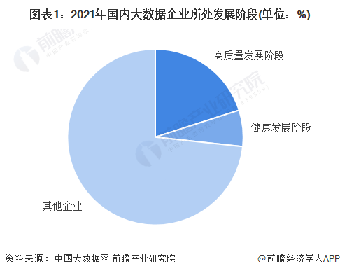 人工智能、VR、5G、区块链、边缘智能等新技术的交汇融合,持续加速技术创新。与此同时,伴随新型智慧城市和数字城市建设热潮,各地与大数据相关的园区加速落地,大数据产业持续增长。根据数据显示,截至2021年8月31日,全国共有大数据企业6万余家,而从我国大数据行业企业发展阶段来看,根据中国大数据网发布的《中国大数据产业白皮书(2021年)》显示,其中处于高质量发展阶段的企业数量达12432家,占比超过了20%。