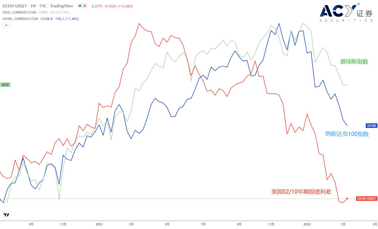 美债利差与股票指数对比