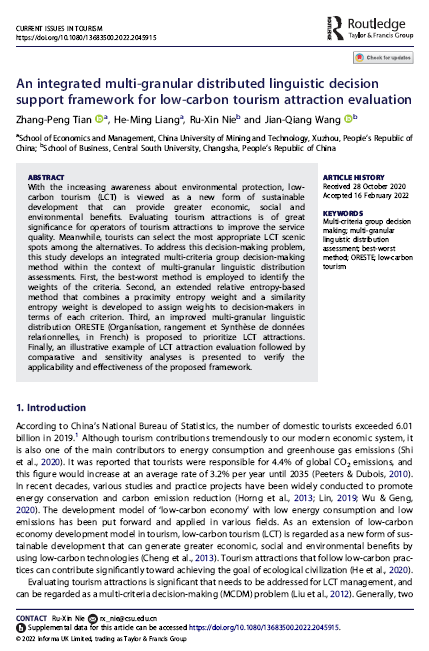 【文题(必填)】An integrated multi-granular distributed linguistic decision support framework for low-carbon tourism attraction evaluation