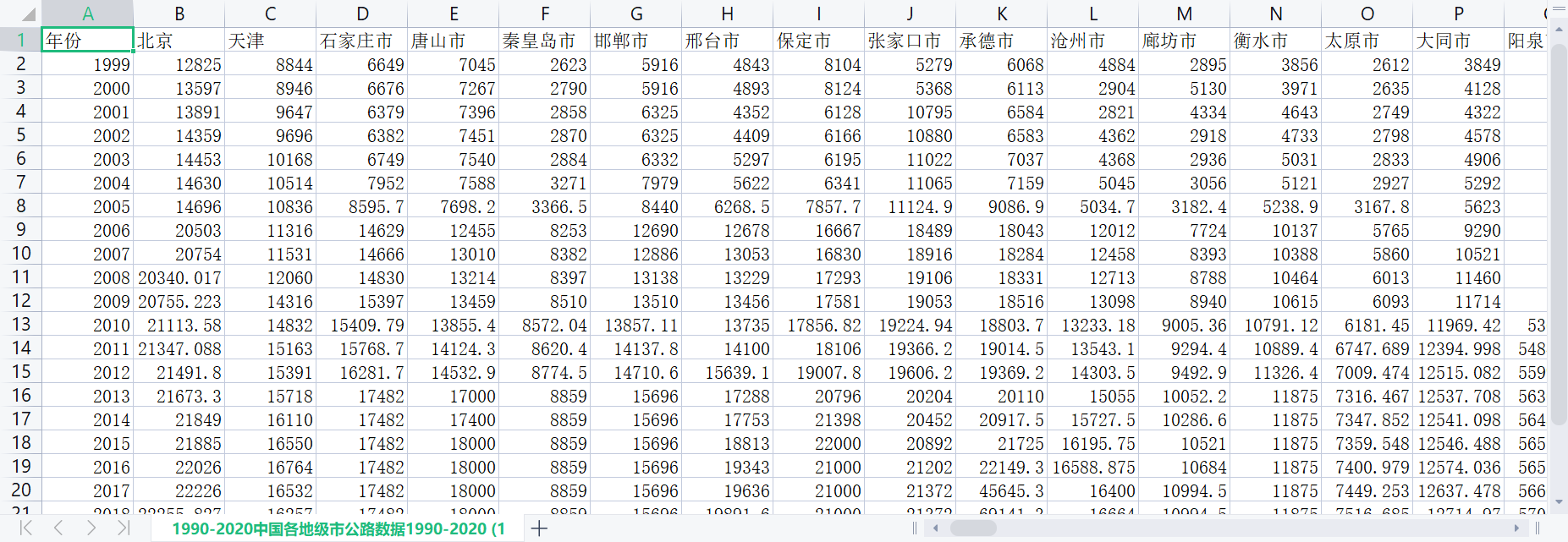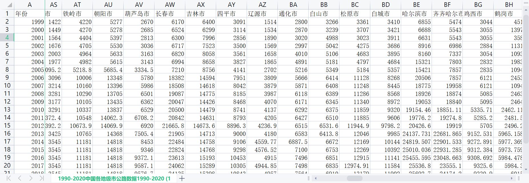 4、指标说明:该数据是全国289个地级市的公路里程数据,数据单位为公里。时间跨度从1990-2020年,目前最新的公路数据集合,包含到了2020年!