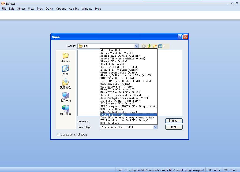 蓝色 发表于 2011-5-9 16:58 eviews7是可以直接打开stata、excel等格式数据的。