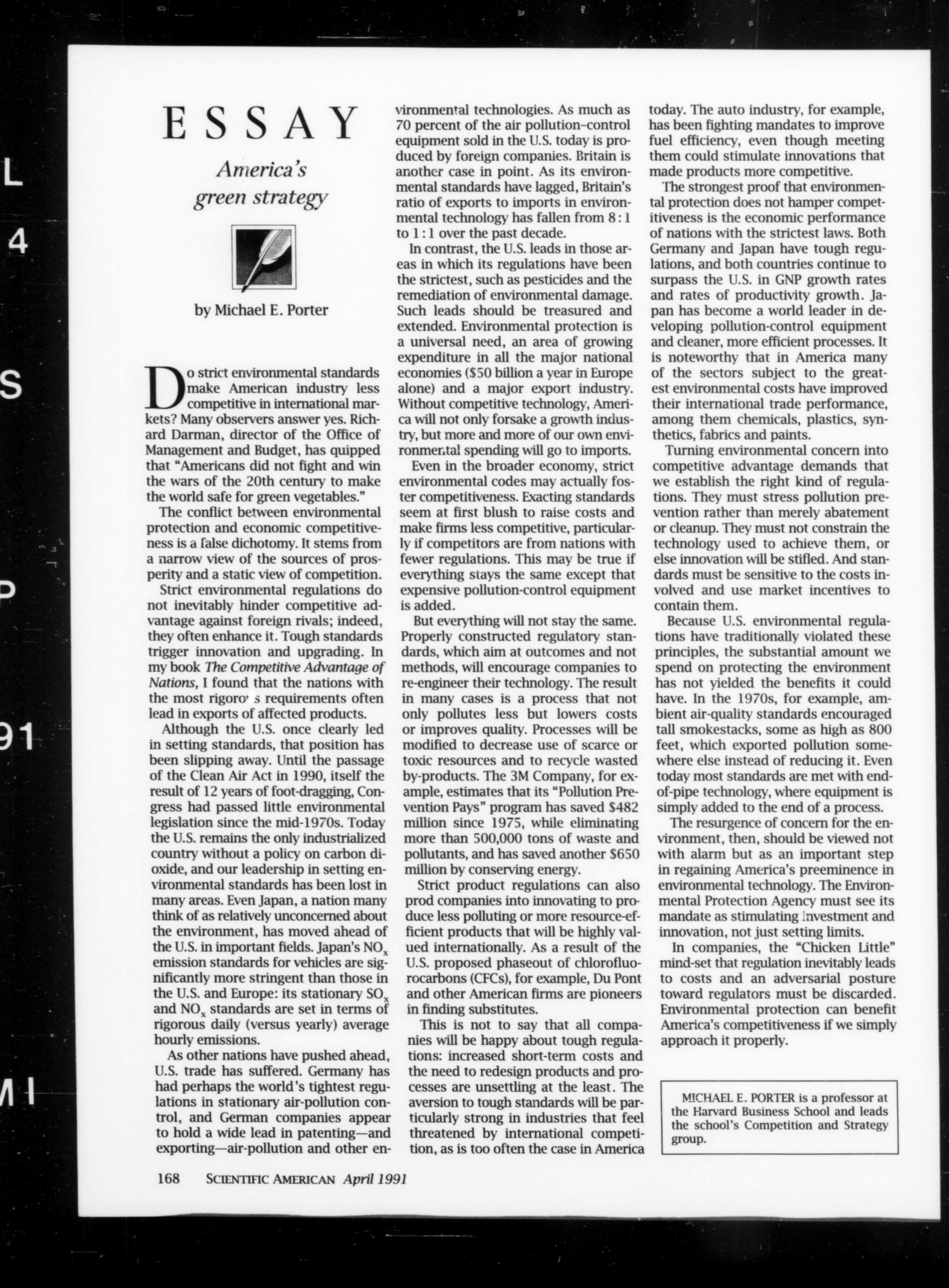 salatango 发表于 2022-3-25 23:24 Porter M.E. (1991). America’s Green Strategy[J]. Scientific American, 264(4): 168.