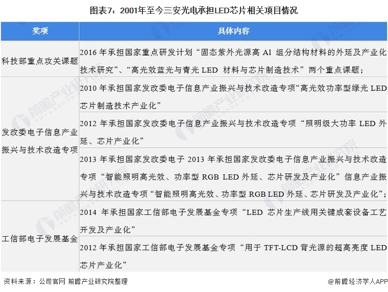 三安光电自从2000年成立以来,在LED芯片技术上持续进行研发创新,研发实力雄厚。多项产品技术获得重大技术发明奖、国家重点新产品奖、福建省优秀新产品奖等以及承担了科技部重点攻关课题、发改委电子信息产业振兴与技术改造专项、工信部电子发展基金等多项省部级项目。