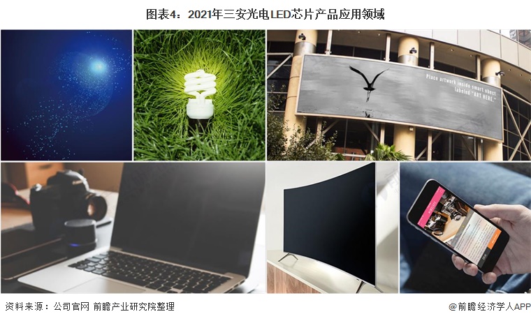 从产品应用范围来看,三安光电产品应用领域覆盖照明、显示屏、电脑、手机、TV等多领域。