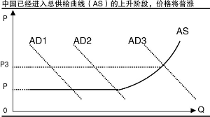 相关图表如图,横轴表示劳动力供给,纵轴表示工资水平。工资水平长期保持不变劳动力过剩,随着AD1右移至 AD3到了劳动力过剩向短缺的转折点,即刘易斯拐点,在过去民工劳动力一直供大于求,随着特定的背景因素的变化,如果不涨工资就招不到人,出现民工荒。