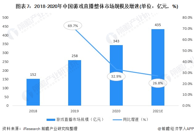 2020年中国游戏直播市场规模达到343亿元,在虎牙、斗鱼等头部平台增长的带动下,市场仍保持着一定的增速。此外,随着哔哩哗哩、快手等视频平台游戏直播业务的快速发展,市场规模不仅包含游戏直播平台收入,还包含其他视频平台的游戏直播内容带来的收入,多样化平台游戏直播业务的快速发展,将给市场带来新的活力。