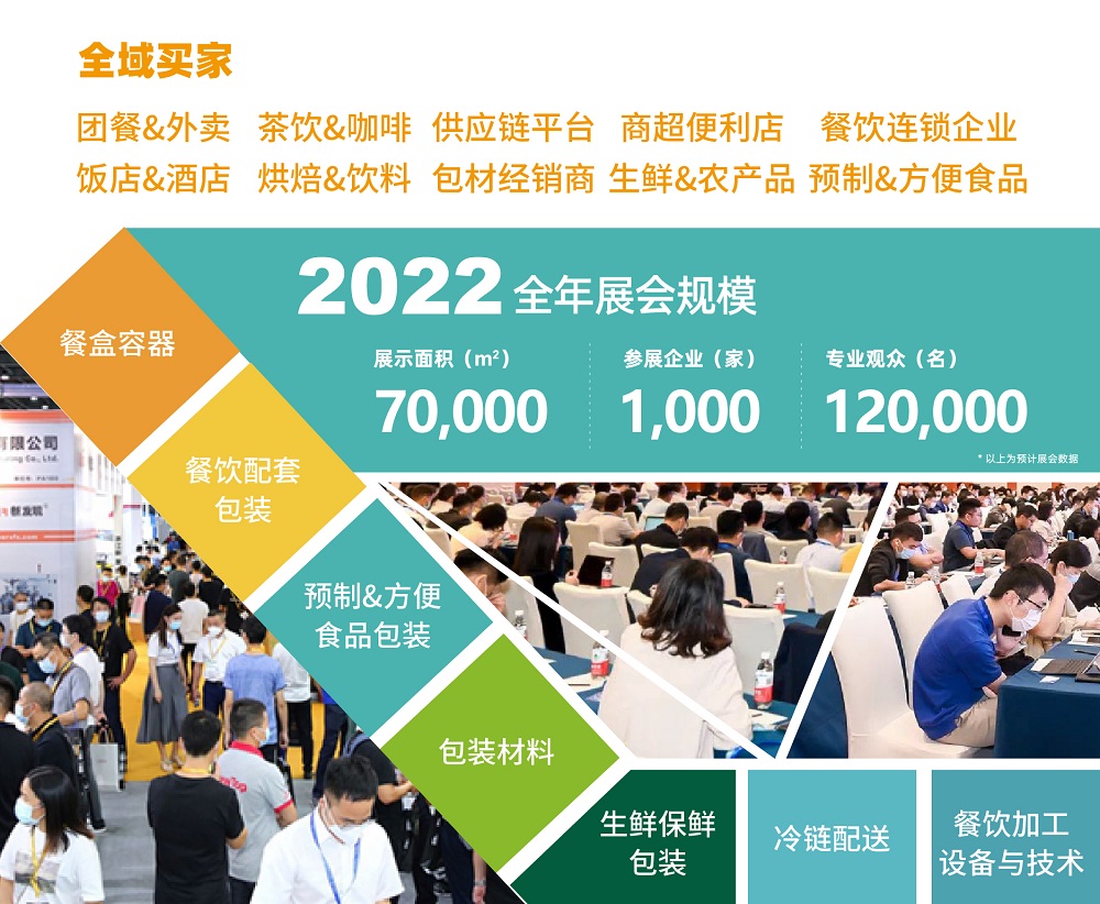 从展示内容来看,2022郑州餐饮外卖包装展暨餐饮加盟展以“餐饮外卖包装”为主题,设立”餐饮外卖包装展区"和“餐饮连锁加盟”两大展区。“餐饮外卖包装展区” 主要展示一次性餐盒、外卖打包袋等餐饮与外卖包装核心内容;本届餐饮外卖包装展会同期的”餐饮连锁加盟展”链通产业上下游,汇集3000家餐饮品牌连锁运营公司与20000名餐饮与食品行业包装采购决策人,集中释放强大采购力。