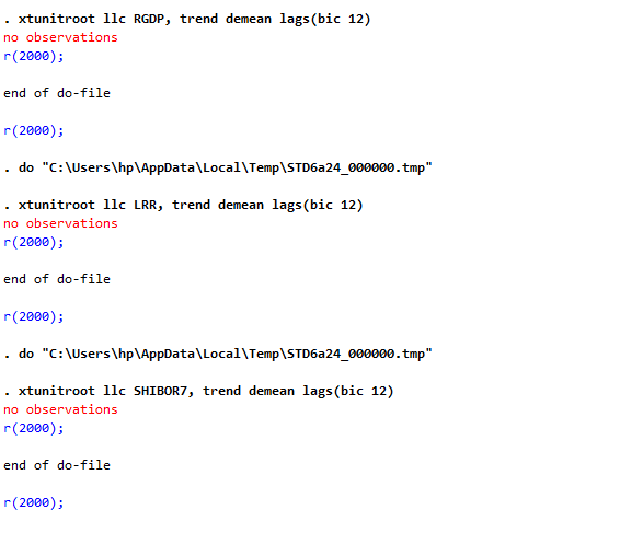 stata面板数据7天SHIBOR季度数据无法进行LLC检验
