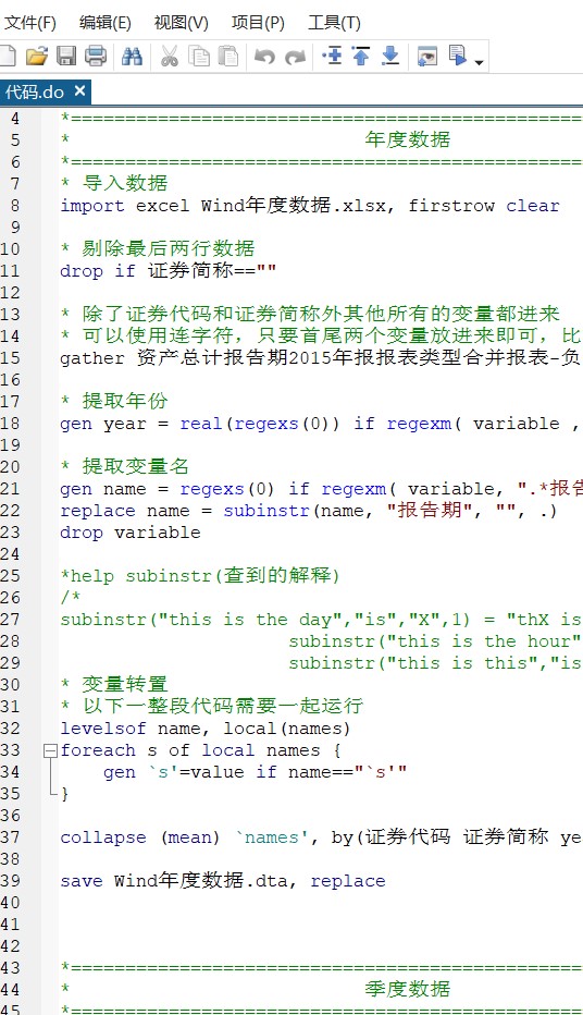 截面数据转化成面板数据,宽面板数据转化成长面板数据stata转化代码,包括季度数据和年度数据转化成面板数据!我们从Wind以及EPS等数据库下载的数据很多都是短面板数据,但是stata实证却要求使用长面板数据,这时候就需要面板数据转化,把短面板数据转化为我们需要的长面板数据,excel的数据透视虽然可以实现类似的操作,但是面对数据量大的数据,Excel极容易出现死机的现象,因此这里提供stata短面板数据转化为长面板数据的代码,供大家交流学习!