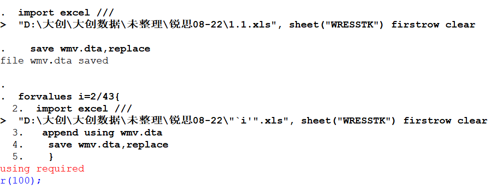 使用append using“文件路径”代码时报错显示using required r(100),请问如何解决