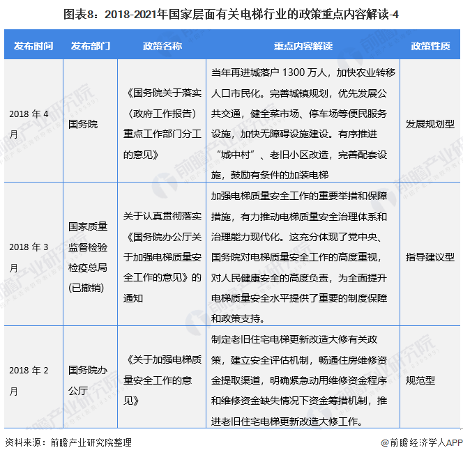 电梯对我国建筑业以及人们的生产、生活日常来说是必不可缺的一项特种设备。自2018年起,我国出台了各项政策推动了中国电梯行业的蓬勃发展。