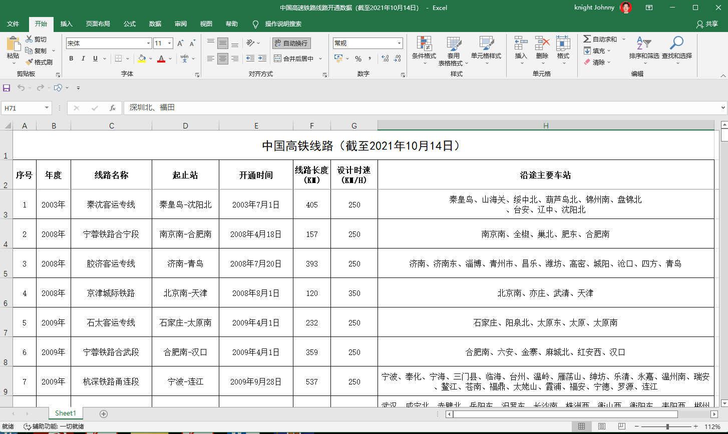 中国高速铁路线路开通数据(截至2021年10月14日).xlsx