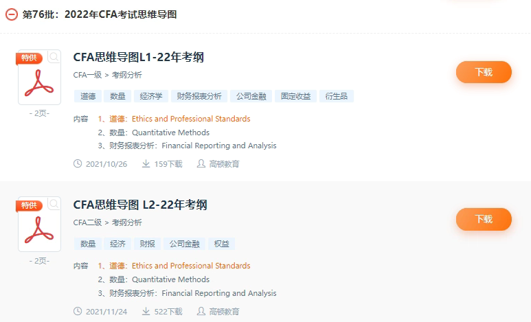 把资料整理了一部分,一共有37份,有2022年CFA考试的思维导图、公式表、考纲对比、数学手册、自测题库、知识点梳理和解析等等,如果需要的话,可以点击下方链接自取: