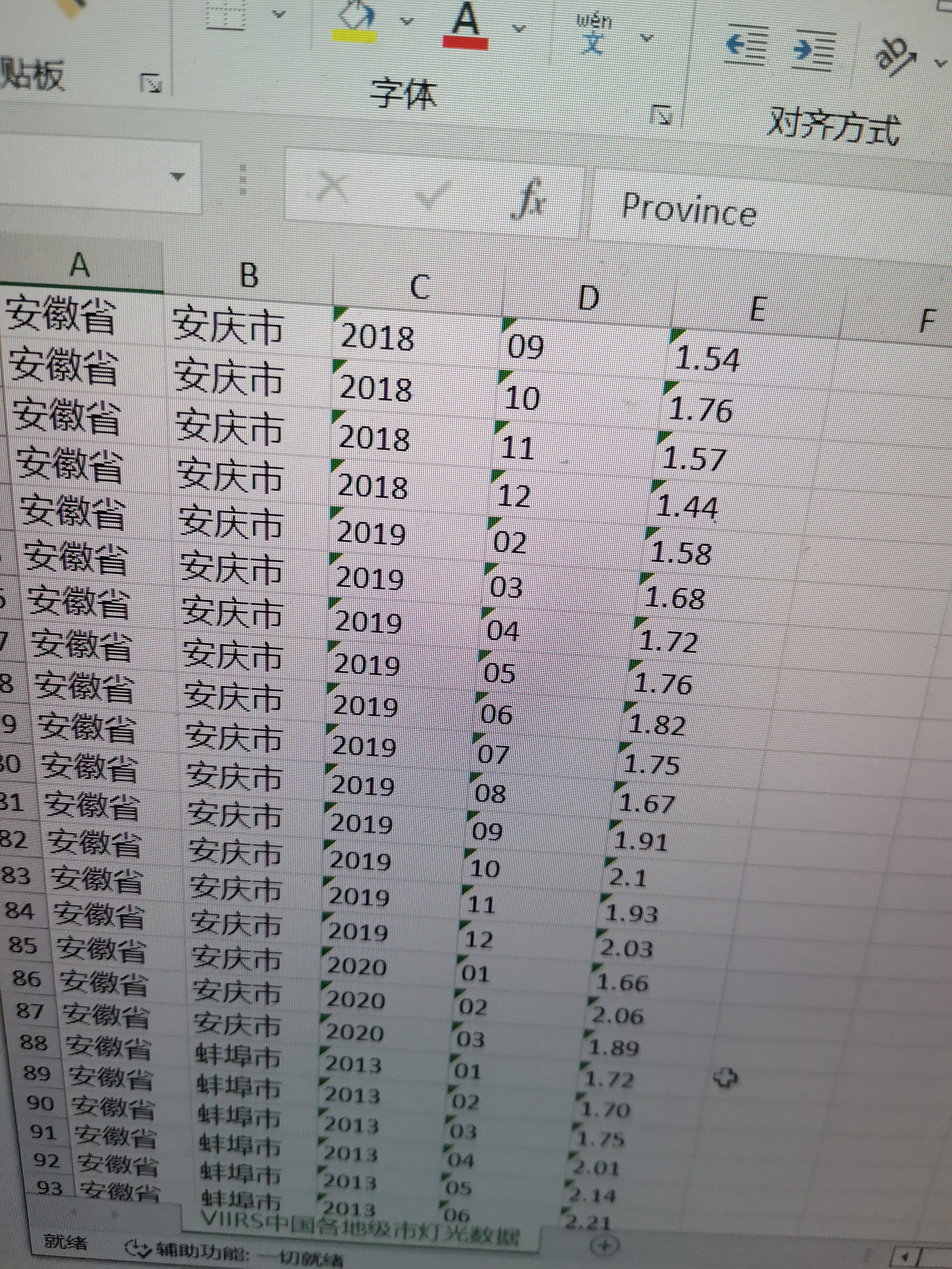 VIIRS中国城市灯光数据.xlsx