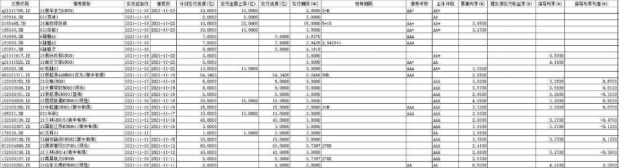 债券代码列表 <br>