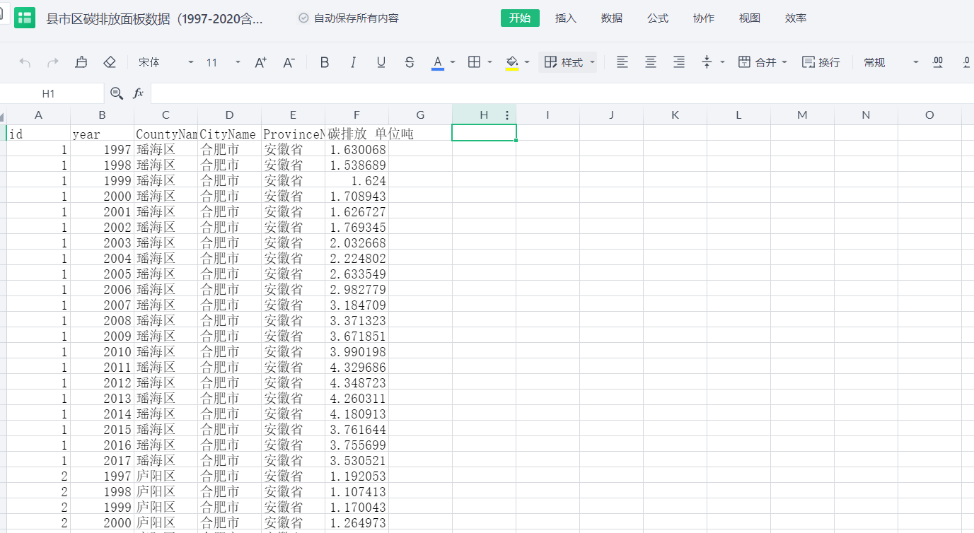 县市区碳排放面板数据(1997-2020含数据来源).xlsx
