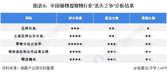 基于上文分析结果,前瞻认为,晨光生物和莱茵生物的植物提取物业务发展各有千秋,但鉴于晨光生物在品牌布局和植物提取物业务经营业绩方面占有优势,目前是中国植物提取物企业中的“龙头”。