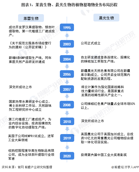 1、莱茵生物VS晨光生物:植物提取物业务布局历程