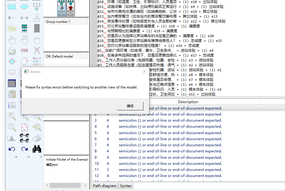 请问出现这种提示该怎么办,提示我修改语法错误,可是该怎么修改呢,不修改又回不到模型界面去。如果能帮我有效解决问题的话,愿意赠送一定的论坛币