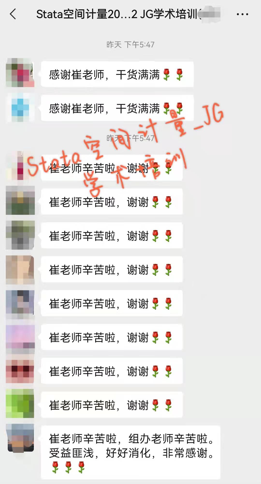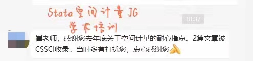 JG学术培训联合空间计量金牌讲师崔百胜自2018年开始,进行了13场Stata空间计量课程,得到老师和同学的肯定:(见回复一,二楼)