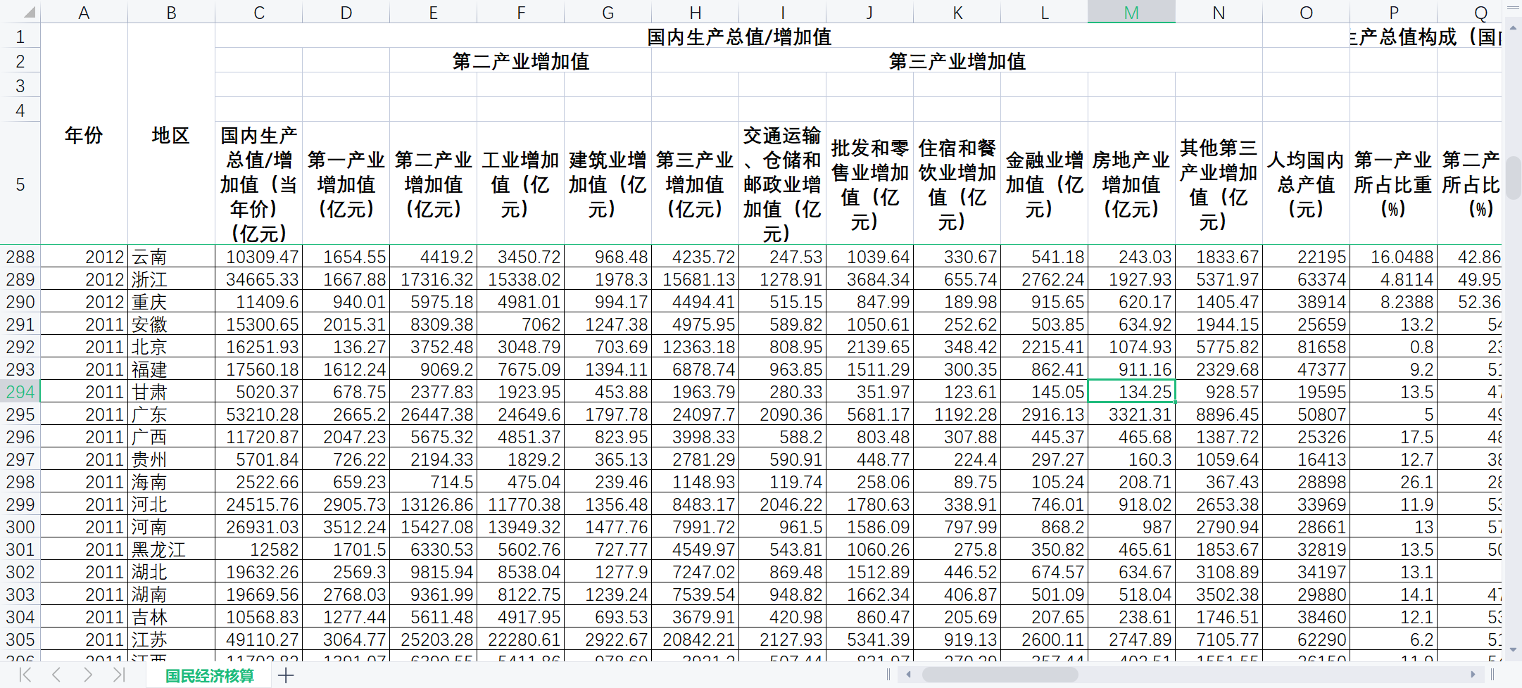 | 国内生产总值/增加值 | 第一/二产业增加值 | 国内生产总值/增加值(当年价)(亿元) |