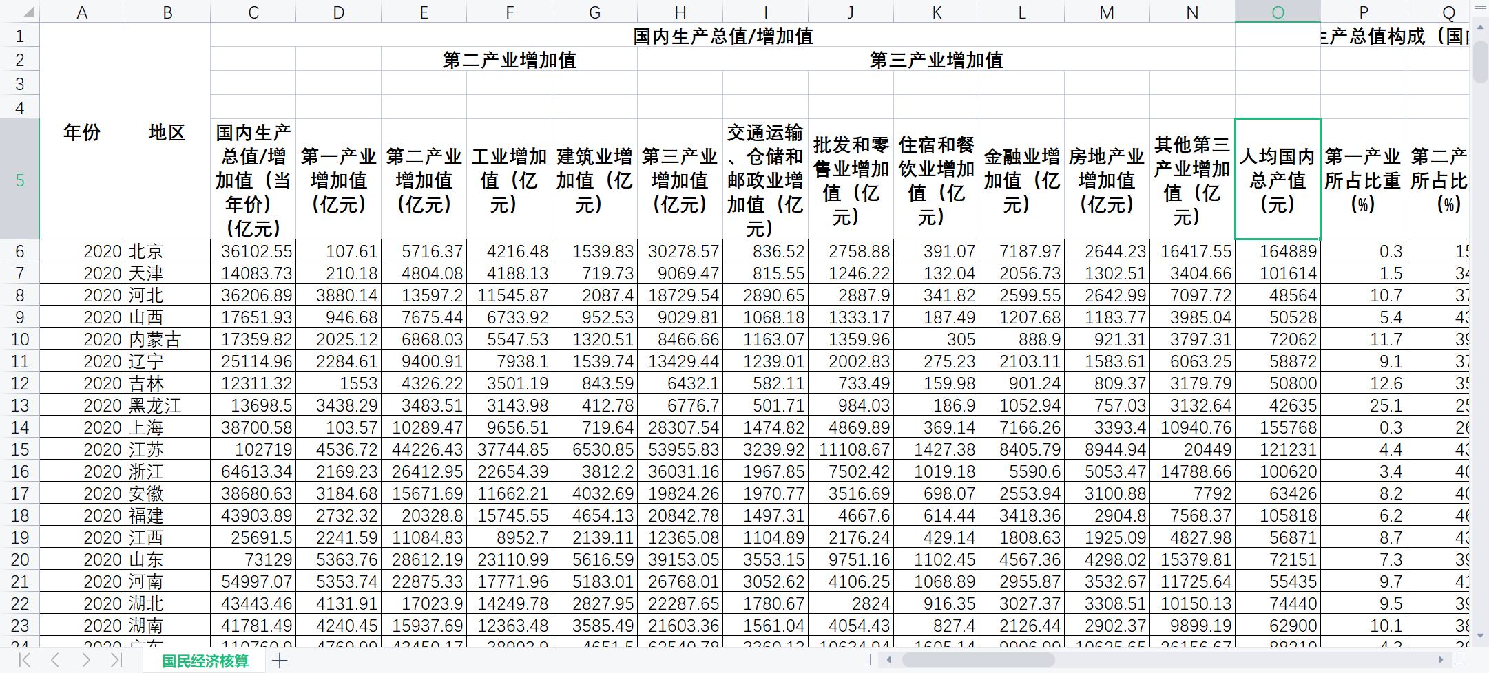 | 第三产业增加值 | 第三产业增加值(亿元) |