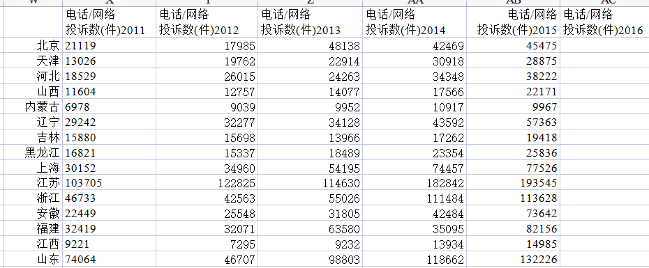 2011-2015年的数据是来信数+电话/网络投诉数"
