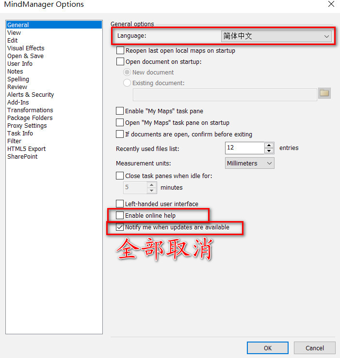 6. 打开软件,在option中将“有新更新提醒我”关闭。
