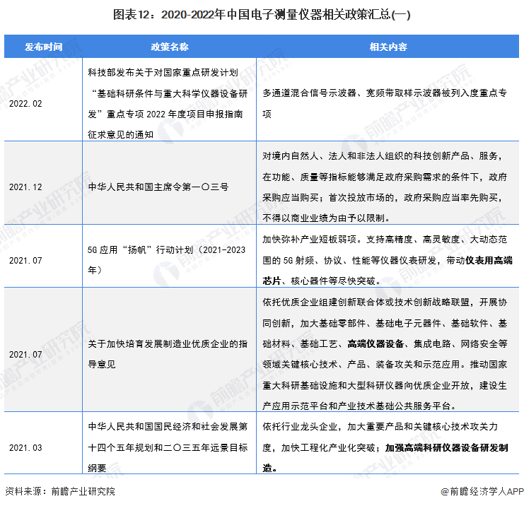 4、电子测量仪器行业政策分析