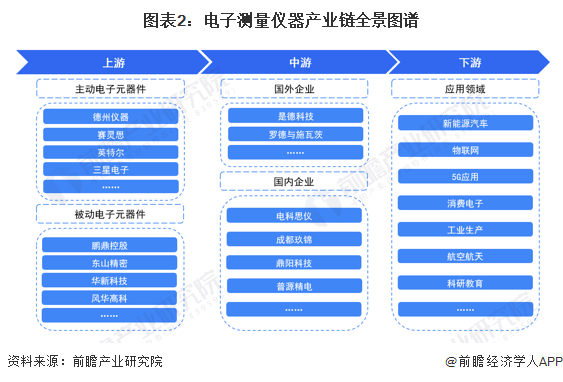 在产业链中游方面,主要包括电子测量仪器的研发、生产和销售,中游的企业主要分为通用电子测量仪器制造企业和专用电子测量仪器制造企业。