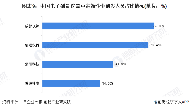 根据对普源精电、鼎阳科技、创远仪器、成都玖锦等四家可比企业财务数据的整理与分析,四家企业研发人员占比均在34%以上。其中成都玖锦研发人员占达到66%,领先其他企业。
