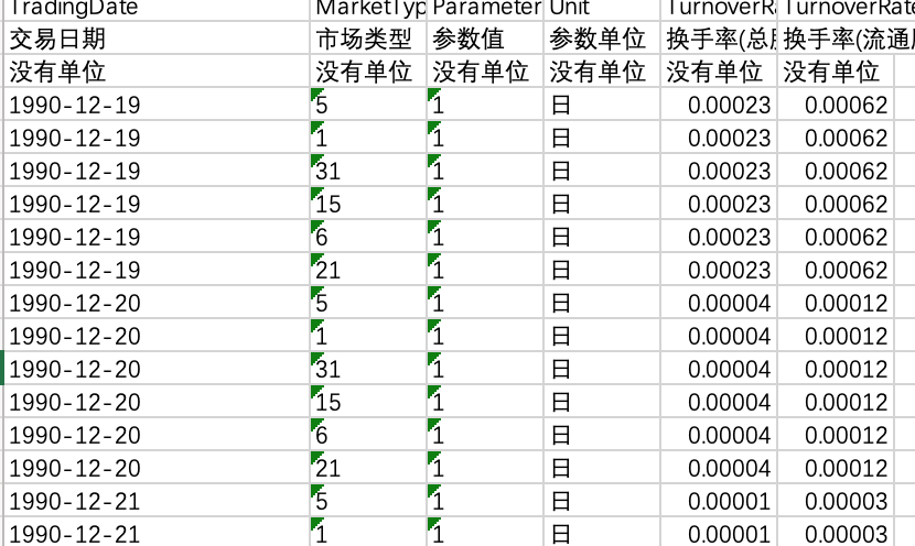 | 交易日期 | 市场类型 | 参数值 | 参数单位 | 换手率(总股本) | 换手率(流通股本)