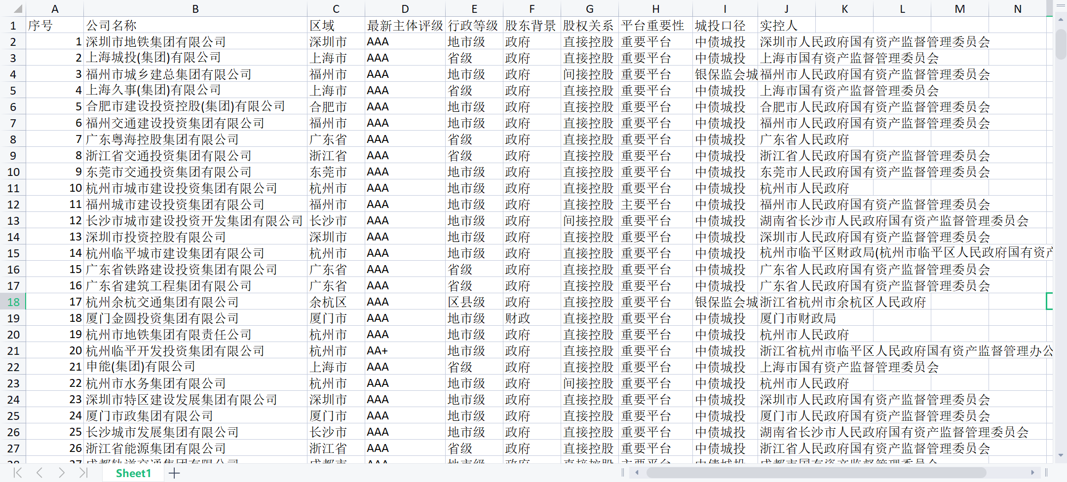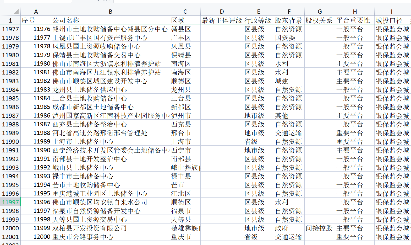 12000家城投名称、区域、主体评级、股东背景、股权关系、平台重要性、城投口径、实控人等
