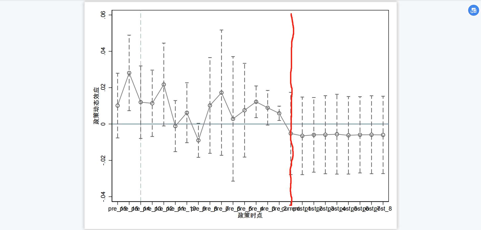 求学长学姐们帮帮看我的双重差分平行趋势检验是不是通过了,谢谢。